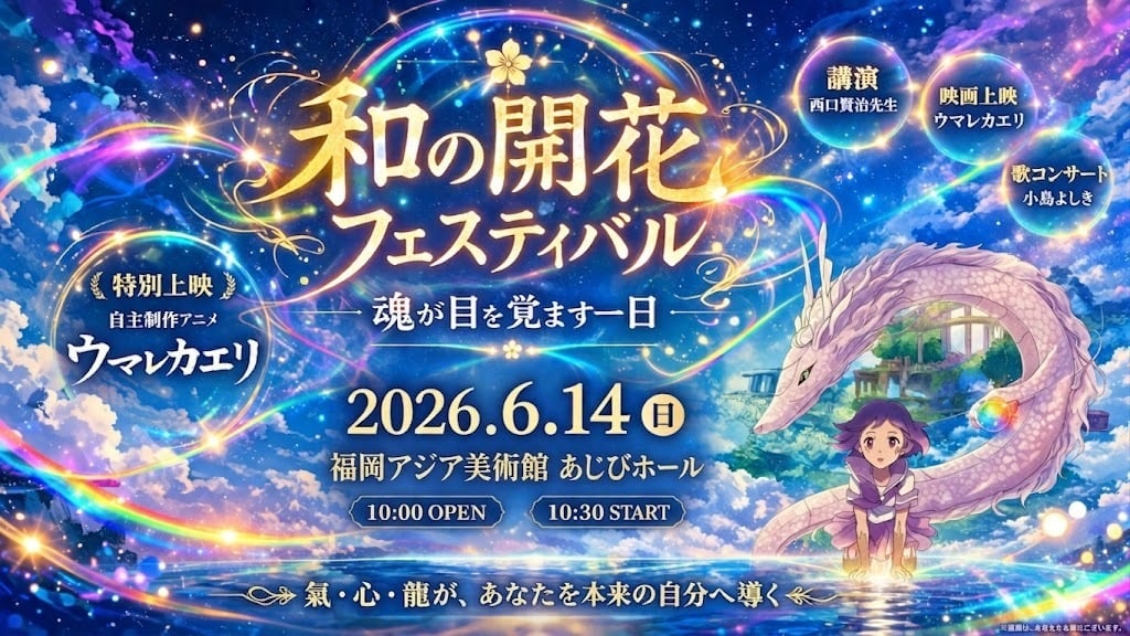 心に響く体験をお届けする「和の開花フェスティバル」のチケット販売を開始しました!2026年6月14日に開催されるこの特別なイベントでは、自主製作映画「ウマレカエリ」の上映が行われ、参加者全員が自らの魂と向き合うことができる絶好の機会となります。あなたの人生に新たなインスピレーションを与えてくれることでしょう。